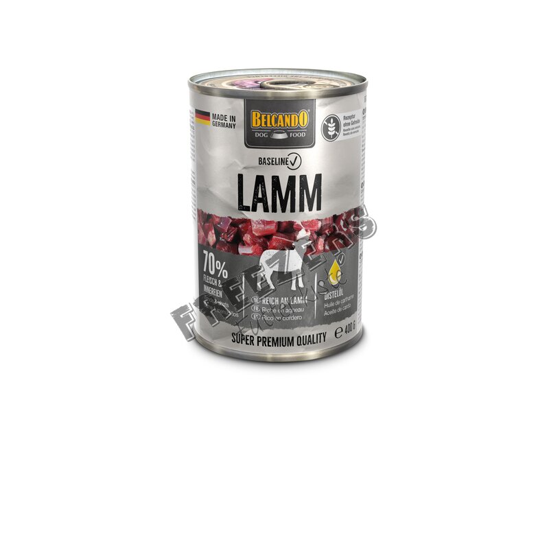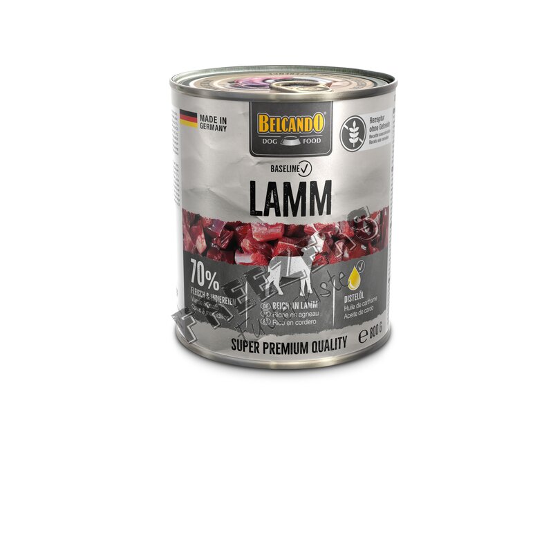 Lammfleisch, -herz, -lunge, -milz, -niere, -pansen (26 %); Fleischbrühe (28,8 %); Fleisch; Leber; Magen; Herz; Niere; Lunge; Eierschalen, getrocknet; Mineralstoffe; Distelöl (0,2 %)