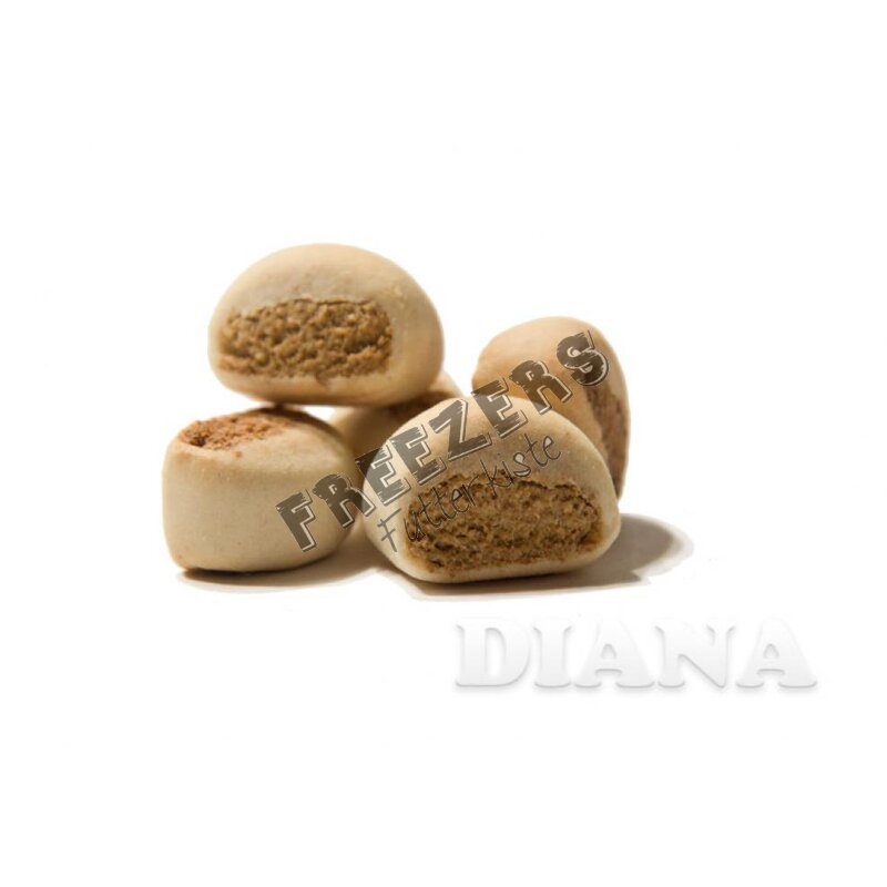 DIANA Geflügelrollies sind ein kleiner Belohnungssnack, mit einem Mantel aus einer natürlichen Getreidemischung und einer Füllung mit Geflügelfleisch und Fisch.