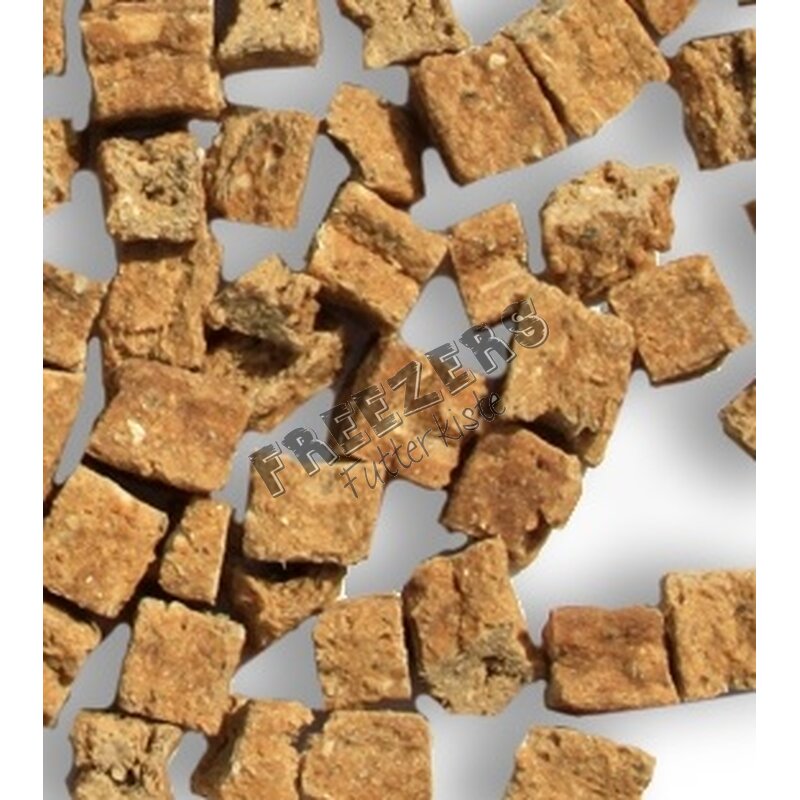 Die Flunder Mini Würfel sind die perfekte Belohnung für kleinere Hunde und Welpen, aber auch Katzen mögen unsere Flunder Mini Würfel sehr gerne. Dieser natürliche Snack ist frei von Zusätzen und passt prima in jeden Futterbeutel.