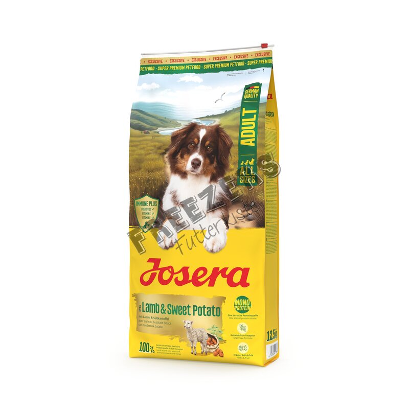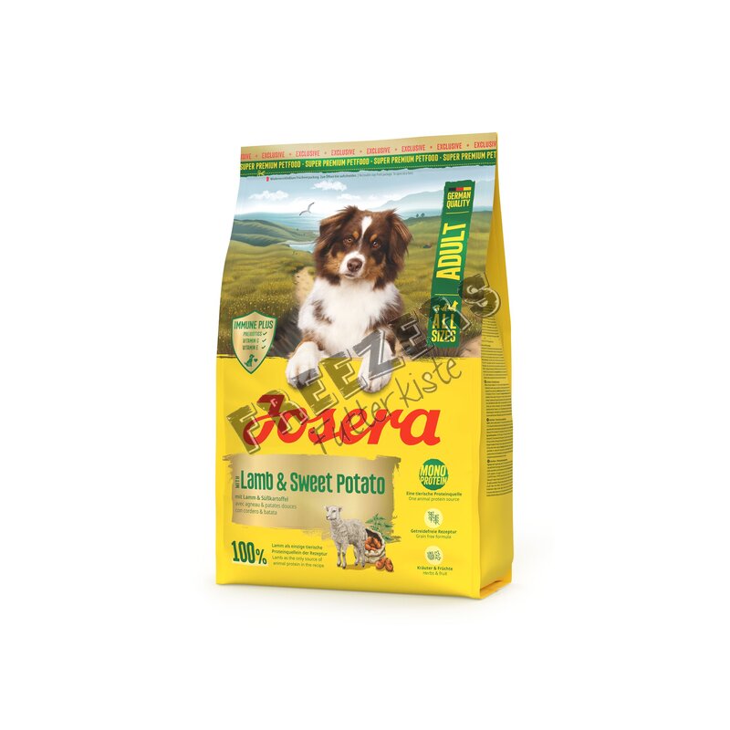 Josera Lamb & Sweet Potato bietet puren Lammgenuss mit erlesenen Kräutern und Früchten und ohne Getreide in der Rezeptur. Das Adult Hundefutter sorgt mit Lamm als einzige tierische Proteinquelle sowie Süßkartoffel als wertvolle alternative Energiequelle für eine gut verträgliche Mahlzeit, die für alle Rassen und Größen geeignet ist. Wichtige Vitamine und Mineralien runden das Futter ab.