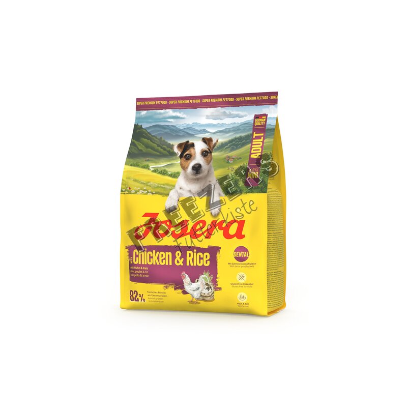Futternd die Zähne pflegen! Josera Mini Chicken & Rice ist speziell auf die besonderen Bedürfnisse kleiner Hunde abgestimmt – mit entsprechend kleinen Kroketten. Die glutenfreie Rezeptur des Adult Hundefutters mit Huhn und Reis ist gut verträglich und schmackhaft. Zweibeiner werden sich zudem darüber freuen, dass durch verstärkte Bindung von Calcium im Speichel das Risiko zur Zahnsteinbildung reduziert werden kann.
