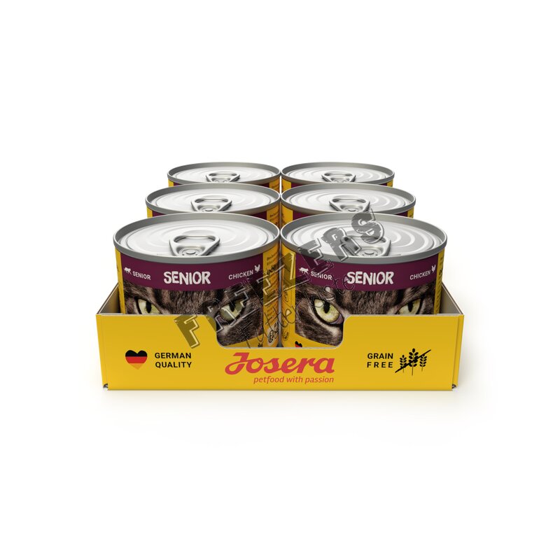 Was haben Katzen und guter Wein gemeinsam? Im Alter werden sie immer besser! Mit unserem Josera Nassfutter Senior kommen ältere Samtpfoten immer auf ihre Kosten – und können sich über Abwechslung im Napf freuen. Die getreidefreie Rezeptur ist mit saftigem Hühnchen verfeinert. Lachsöl ist auch mit dabei und sorgt für essenzielle Omega-3-Fettsäuren.