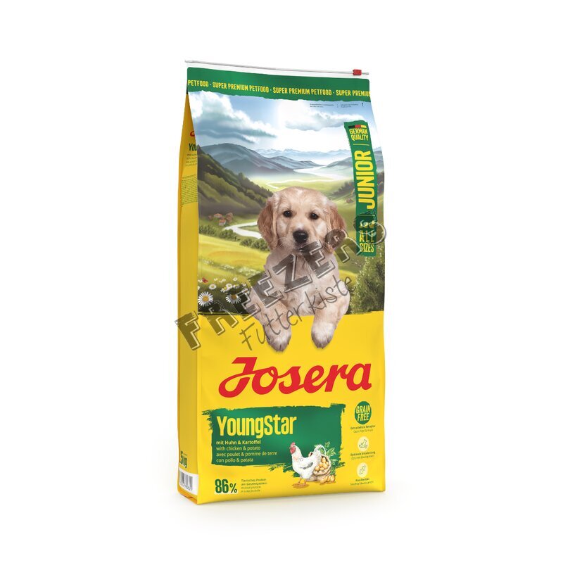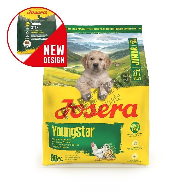 Josera YoungStar ist das optimale Welpenfutter für Welpen und Junghunde aller Rassen ab der 6. Woche. Es versorgt junge Abenteurer mit besonders wertvollen Inhaltsstoffen und sorgt so für eine optimale Entwicklung. Die Rezeptur ist komplett getreidefrei – dafür setzen wir bei diesem Futter für heranwachsende Hunde auf leckeres Huhn mit Kartoffel und 86 % tierischem Protein am Gesamtprotein. Den Anteil des Geflügelproteins haben wir mit der neuen Rezeptur sogar noch erhöht. Das schmeckt kleinen Vierbeinern und ist außerdem gut verträglich.