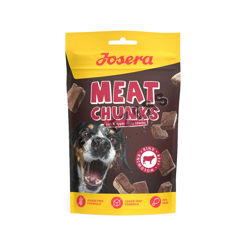 Uund haps! Uuund haps! Weil unsere Josera Meat Chunks so praktisch vorportioniert sind, passen sie noch besser ins Mäulchen Deiner Fellnase. Uuund haps! Die schonend getrockneten Chunks gehen runter wie nix, denn sie haben ganze 90 % Fleischanteil und schmecken riiichtig gut. Die getreidefreie Rezeptur bringt außerdem Vitamin E und L-Carnitin für aktive Vierbeiner mit. Und haps, rein damit!