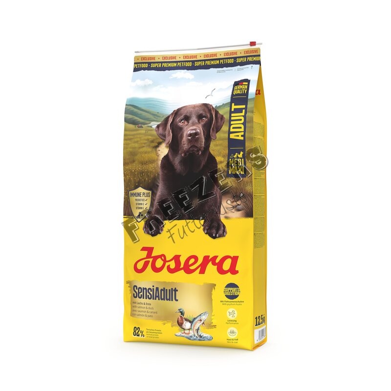 Gut zu wissen: Das sensitive Hundefutter enthält die gleichen hochwertigen Proteinquellen aus Lachs und Ente wie unser Aufzuchtfutter Josera SensiJunior – somit eignet es sich hervorragend als dessen Nachfolger zur problemlosen Umstellung nach dem Eintritt ins Erwachsenenalter.
