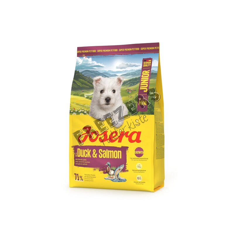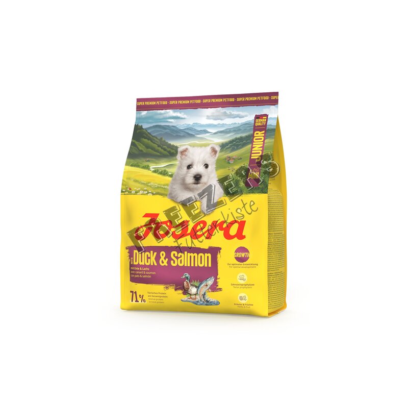 Klein aber oho! Josera Mini Junior Duck & Salmon ist unser spezielles Aufzuchtfutter für kleine Vierbeiner, das eine optimale Entwicklung unterstützt. Dank wertvoller Fettsäuren aus dem Lachs unterstützt das Welpenfutter die Gehirnentwicklung. L-Carnitin und hochwertige Proteine fördern eine optimale Entwicklung der Muskulatur. Taurin sowie L-Carnitin sind wichtige Nährstoffe für das Herz.