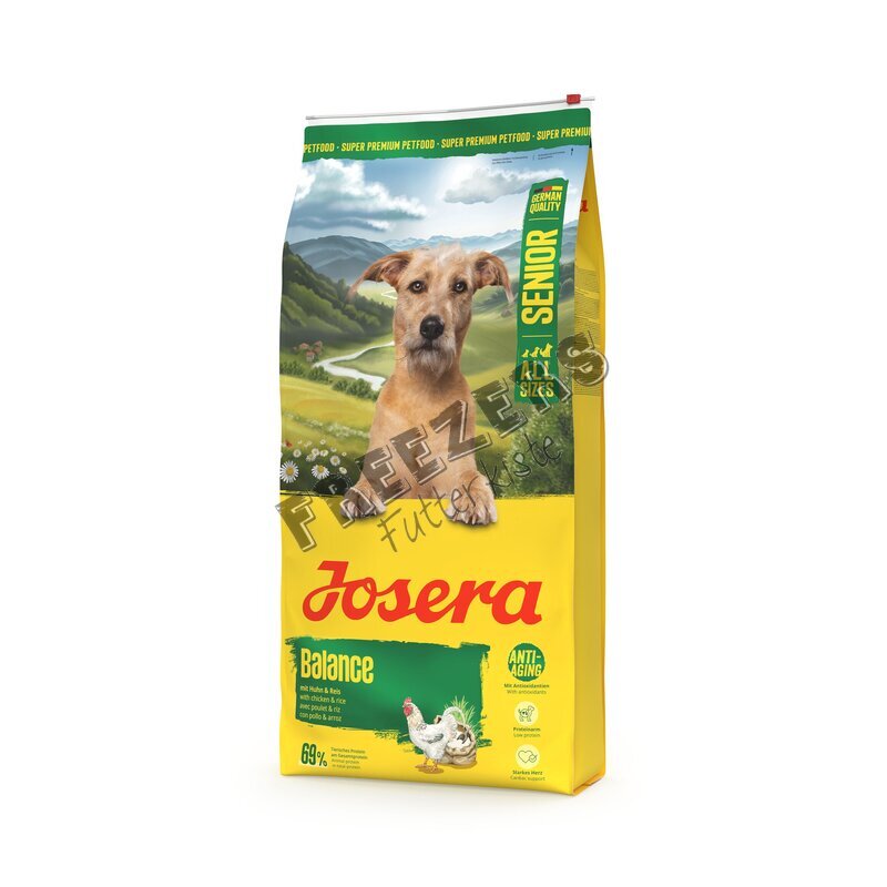 Auf die Bedürfnisse unserer Senior Hunde zugeschnitten: Josera Balance ist das besondere Futter für mehr Vitalität im Alter. Der reduzierte Fett- und Eiweißgehalt hilft, den Stoffwechsel des Hundes zu entlasten. Die gut verträgliche und ausgewogene Rezeptur ist glutenfrei und kann durch wertvolle Antioxidantien wie Vitamin E und C sowie Taurin der Zellalterung entgegenwirken. Da unser Balance außerdem ein phosphorarmes Hundefutter ist, kann es die Organe im Alter zusätzlich entlasten.