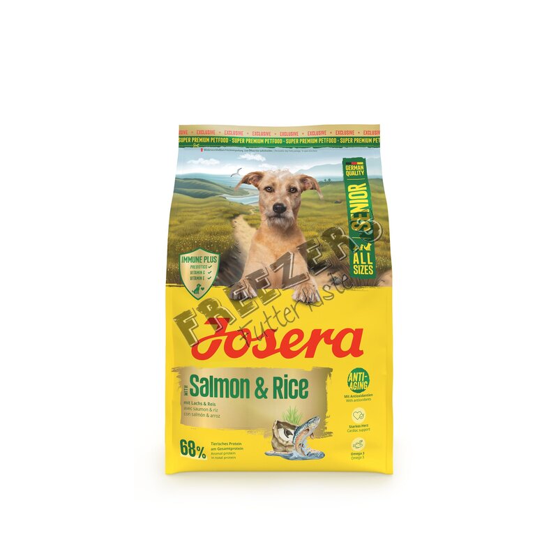 Für die älteren Semester auf vier Pfoten haben wir unser Josera Senior Salmon & Rice im Sortiment: Die Rezeptur des Hundefutters für Senioren wurde speziell auf die Bedürfnisse älterer Hunde zugeschnitten. Es ist fettreduziert und kann Übergewicht vorbeugen. Gleichzeitig entlastet ein reduzierter Eiweiß- und Mineralstoffgehalt die Organe.
