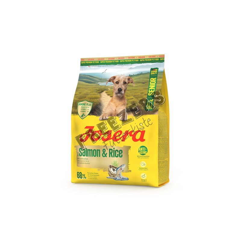Für die älteren Semester auf vier Pfoten haben wir unser Josera Senior Salmon & Rice im Sortiment: Die Rezeptur des Hundefutters für Senioren wurde speziell auf die Bedürfnisse älterer Hunde zugeschnitten. Es ist fettreduziert und kann Übergewicht vorbeugen. Gleichzeitig entlastet ein reduzierter Eiweiß- und Mineralstoffgehalt die Organe.