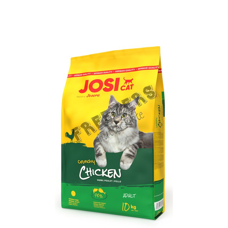 Feine Hühnchenpfanne mit Koriander und …? Ne, lieber was Gescheites! JosiCat Crunchy Chicken bietet für alle Hühnchen-Liebhaber, die es handfest – oder pfotenfest – mögen die passende Mahlzeit. Zudem versorgt die ausgewogene Rezeptur rundum mit allen wichtigen Nährstoffen.