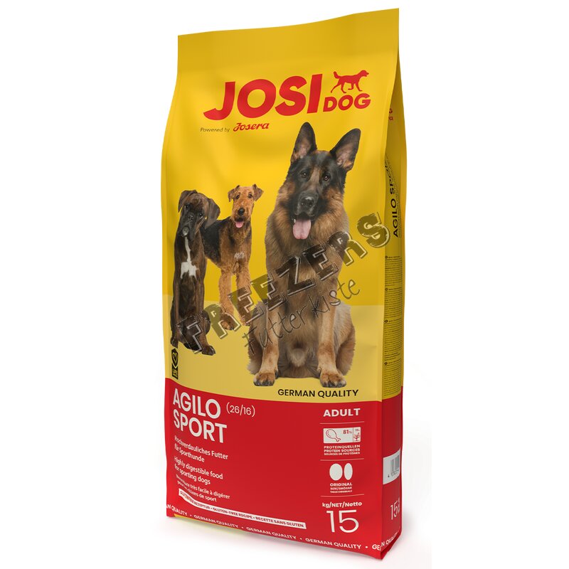 Fei das passende Futter für Uffgereschte! JosiDog Agilo Sport ist ein hochverdauliches Hundefutter für ausgewachsene Fellnasen mit erhöhtem Energiebedarf. Die glutenfreie Rezeptur versorgt vierbeinige Sportler mit wertvollen Fettsäuren und allen wichtigen Nährstoffen.