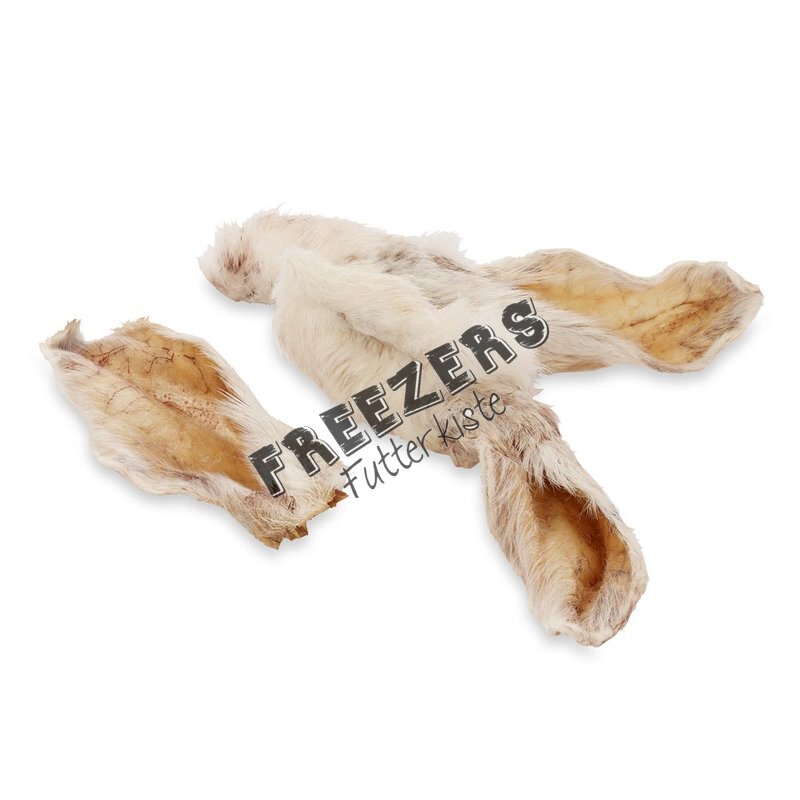 Kaninchenohren sind eine sehr beliebte Belohnung für Hunde und perfekt als Ersatz für Schweineohren geeignet. Kaninchen ist außerdem perfekt geignet für futtersensible Hunde!