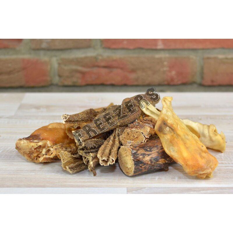Getrocknet, besteht aus Lammpansen, Lammstrosse, Lammlunge, Lammohren mit & ohne Fell, Lamm Würfel, Lamm Lungen Sticks