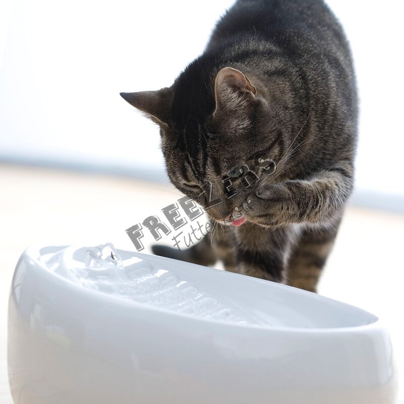 Katzen trinken oft zu wenig! Vor allem dann, wenn sie nur stehendes Wasser im Napf bekommen. Das kann Folgen für die Gesundheit haben. Der Wassermangel wird noch schlimmer bei trockener Heizungsluft im Winter oder wenn Trockenfutter bzw. trockene "Leckerlies" (bei)gefüttert werden. Nach einer wissenschaftlichen Studie* von Prof. Gregory Grauer, stirbt jede dritte Katze über 8 Jahren an den Folgen von Harnweg- und/oder Nierenerkrankungen, die durch Wassermangel ausgelöst werden können.