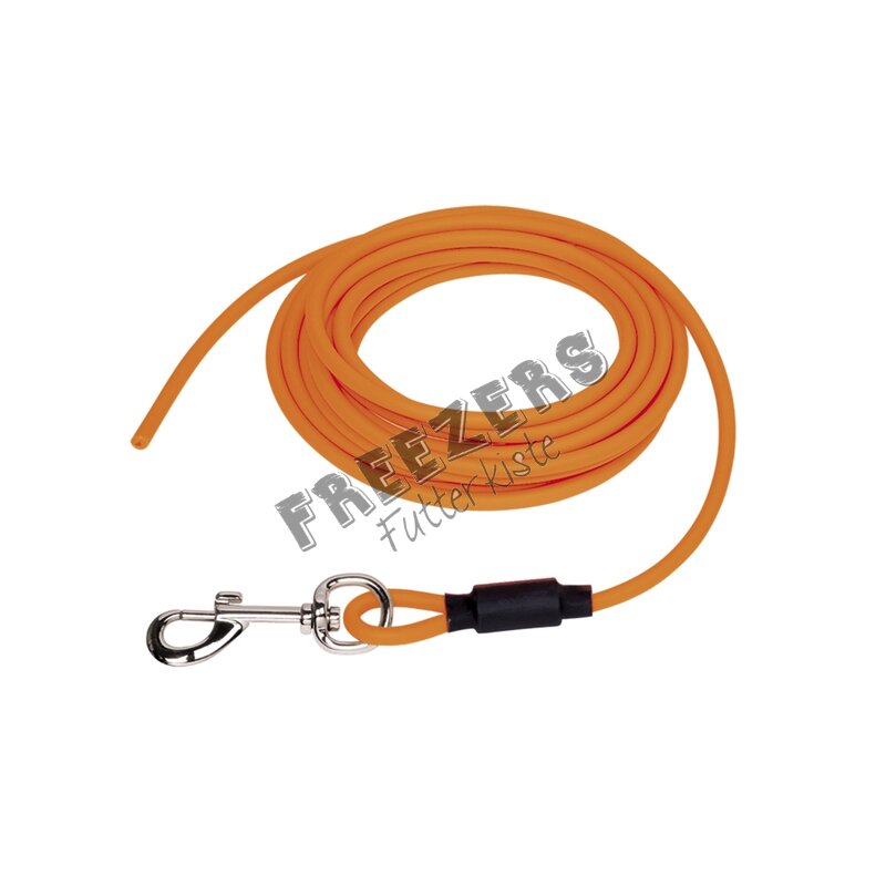 Mit der Schleppleine wird dem Hund genügend Bewegungsfreiheit, trotz Kontrolle geboten. Unverlässliche Hunde lernen so, Distanzen einzuhalten. Sie ist für das Training geeignet - ebenso wie für schnelles Eingreifen bei Verhaltenskorrekturen. Auch bei Spaziergängen im Gelände, wo Hunde angeleint bleiben müssen, bietet sie dem Vierbeiner genügend Bewegungsfreiheit. Die Linie "Cover" zeichnet sich durch seine Witterungsbeständigkeit aus, da sie sowohl wasserfest, als auch UV-beständig ist und dabei ihre Geschmeidigkeit behält. Durch das Polyestergewebe, welches mit PVC ummantelt ist, ist die Leine sehr belastbar und langlebig. Durch die glatte Oberfläche nimmt sie keine Feuchtigkeit oder Bakterien auf und kann bei Verschmutzung sehr leicht durch Abwischen gereinigt und desinfiziert werden. Erhältlich ist die Schleppleine in verschiedenen Längen und Farben.