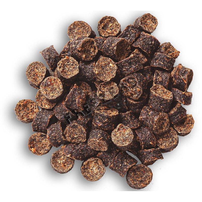 Zusammensetzung: 52,0% Straußenfleisch, Glyzerin, Wasser, Spezial Raps (Canola), 2,5% Mango, Sojaprotein Isolat, ohne weitere Zusätze.