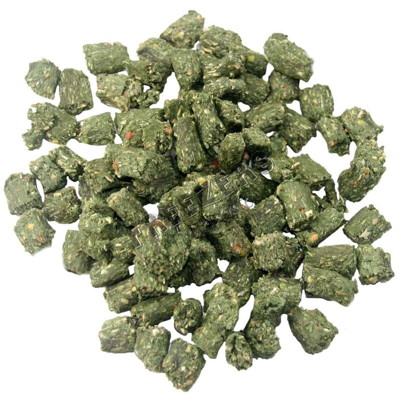 Kartoffeln, Erbsen, Süßkartoffeln, Luzerne, Spinat, Spirulina (1%), Seealgenmehl (1%)