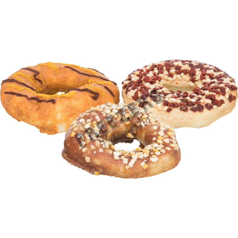 - Mix aus 3 verschiedenen Kauringvarianten aus Rinderhaut mit a) Ente, Kürbis und Banane, b) Kabeljau, Erdbeere und Apfel, c) Huhn