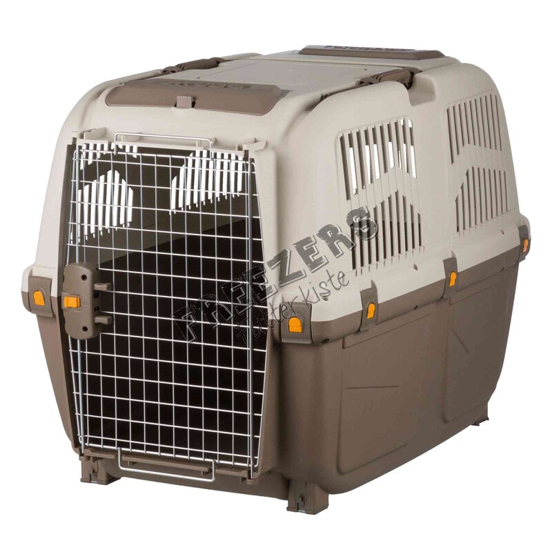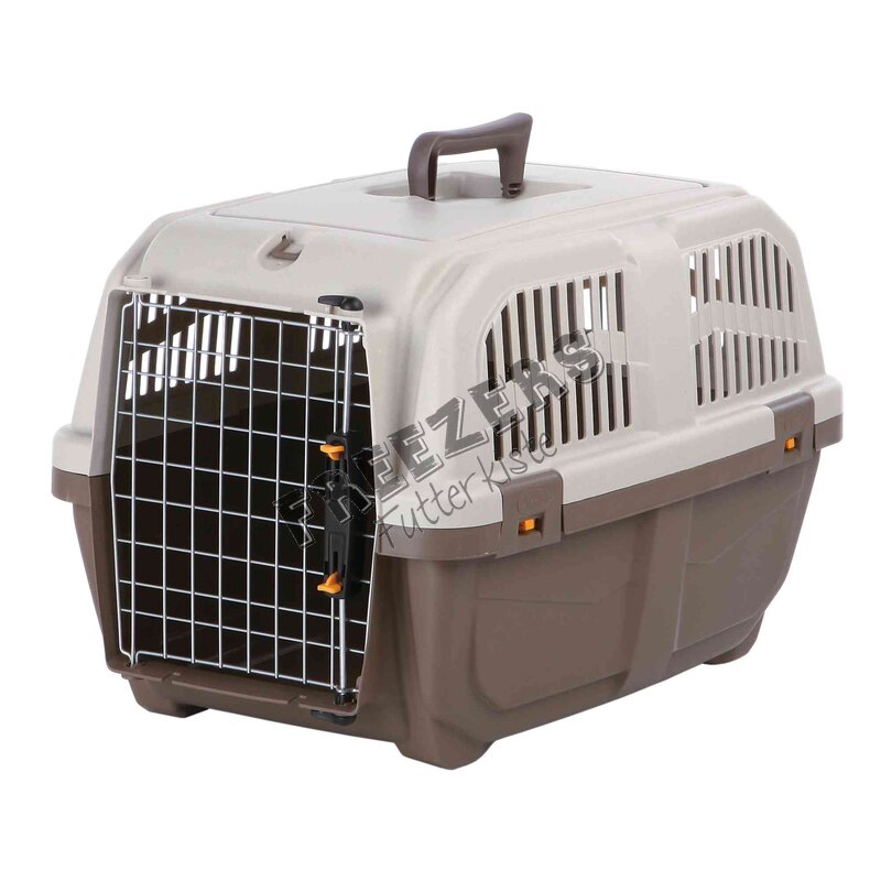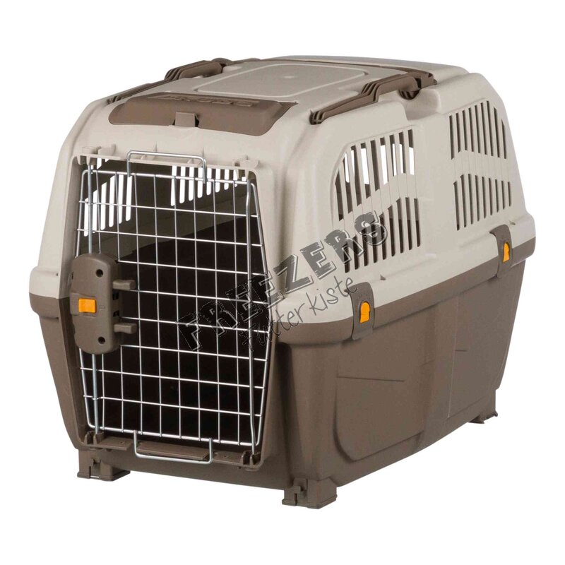 Diese Transportbox wird von fast allen Fluggesellschaften anerkannt. Sie verfügt über Metalltür und verriegelbaren Schnappverschlüssen sowie Belüftungsschlitze (für optimale Luftzirkulation). Mit dem angebrachten Tragegriff lässt sich die Box sehr gut mitnehmen.