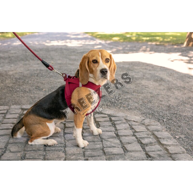 Gleichzeitig bietet es durch neue Schnittmuster und neue Grössenskala eine verbesserte Ergonomie und optimierte Passform. Kommt es zum Zug an der Leine, verteilt sich das Gewicht nun noch besser auf das Geschirr. Dafür wurden die nun direkt im Geschirr eingenähten Bänder mit höher liegender Zugaufnahme angebracht.