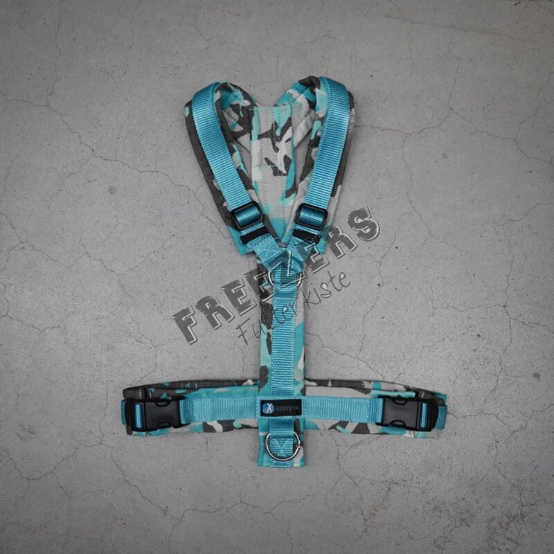 Die umlaufenden Gurte im Brustbereich bilden dank des langen Unterbruststegs einen bewegungsfreundlichen Abstand zu den Vorderbeinen, so dass die Achseln geschont werden. Das Gurtband ist in der kleinsten Einstellung komplett mit luftdurchlässigen Schaumstoff gepolstert und dieser wiederum ist mit Cordura (hoch abriebfestes Material) eingefasst.